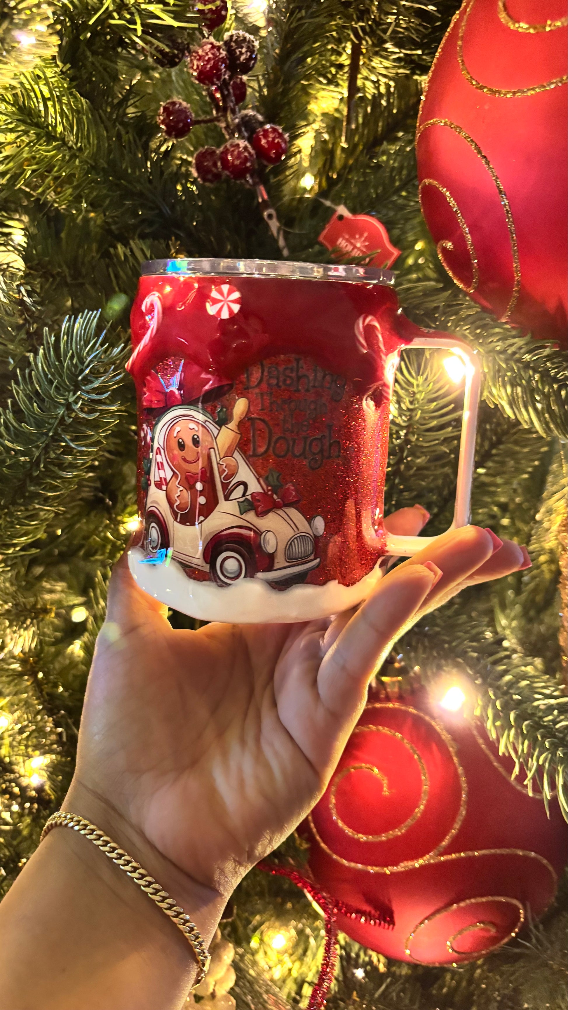 Incluye un hermoso diseño de galletita gingerbread, bastones de caramelo y un efecto de “crema” en 3D que simula una bebida caliente recién servida, creando una experiencia visual y funcional simplemente adorable.