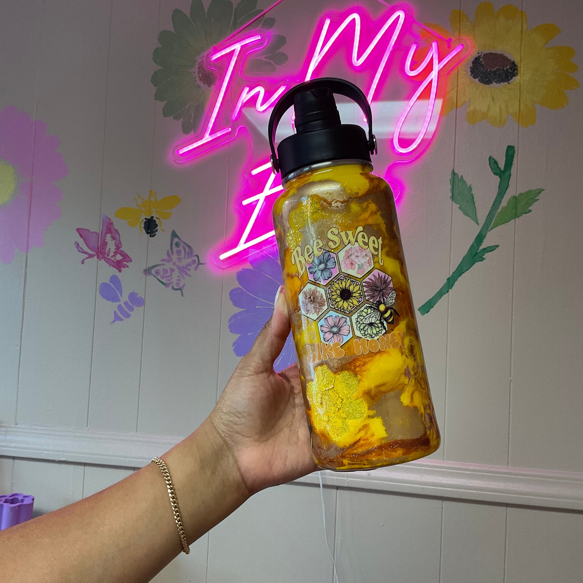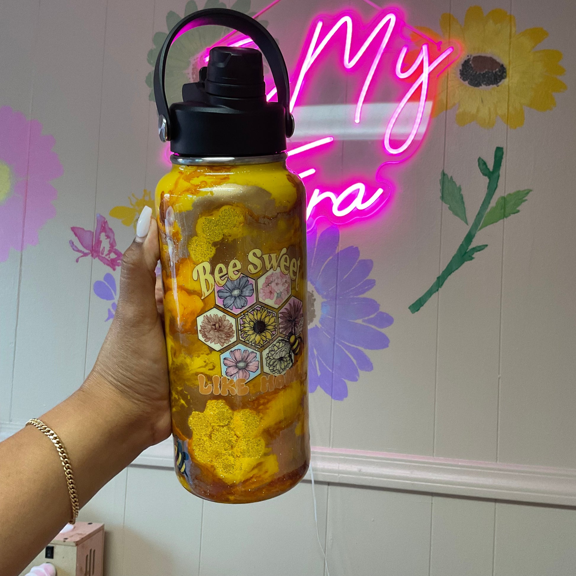 Nuestra botella de agua 3D “Bee Sweet” de 32 onzas ha sido diseñada para quienes buscan funcionalidad con un toque artístico y original. Inspirada en el delicado mundo de las abejas y la naturaleza, esta botella combina belleza, estilo y practicad en una sola pieza.