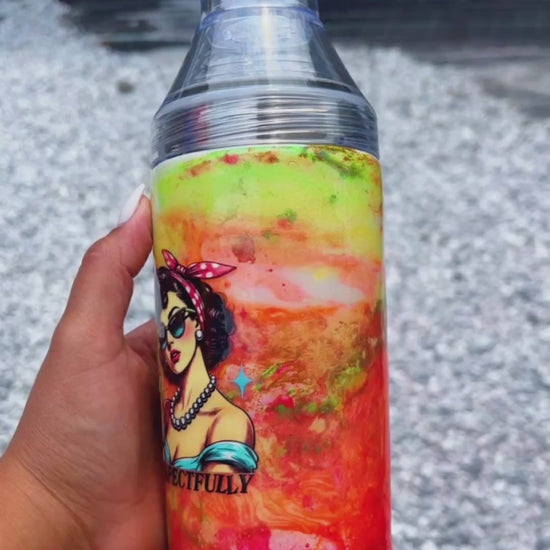 Eleva tu experiencia al preparar bebidas con nuestra coctelera “Respectfully”, una botella diseñada para quienes buscan estilo, personalidad y funcionalidad en cada mezcla. Con un diseño artístico moderno y colores vibrantes, esta botella no solo cumple su función como mezclador de tragos, sino que también se convierte en una pieza única que destaca en cualquier ocasión.